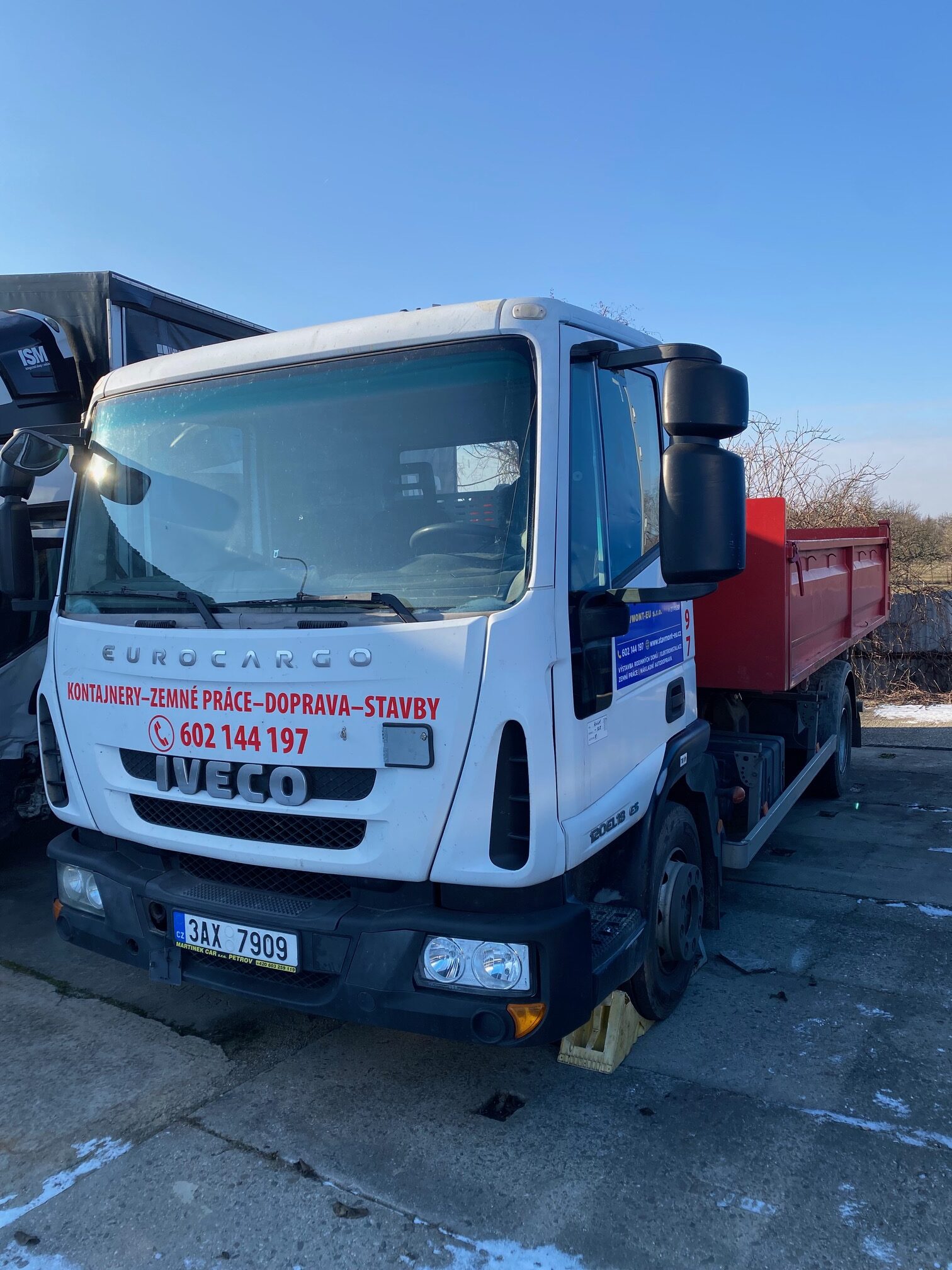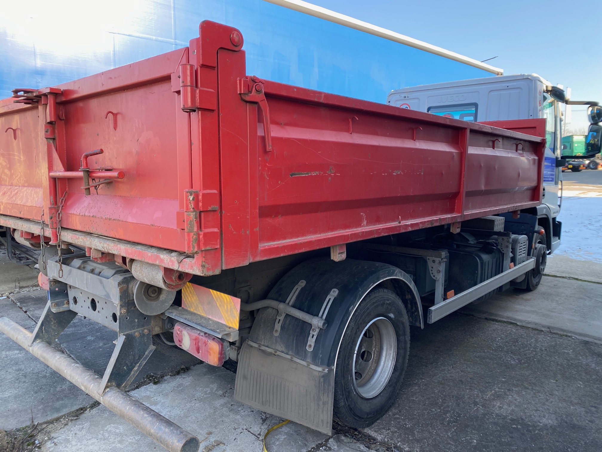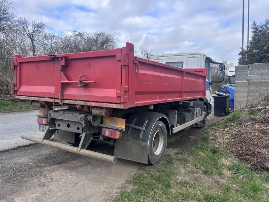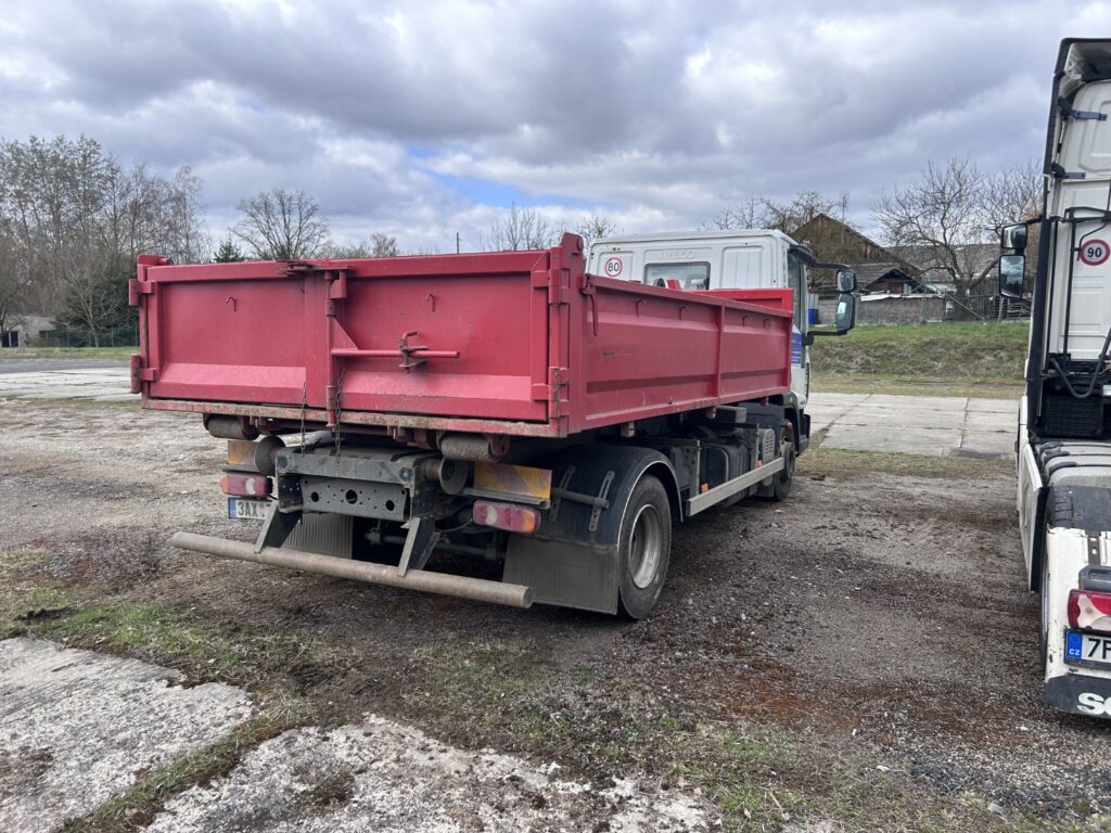 r. v. 2014, ID: 17257, nákladní automobil IVECO 120EL18 + teleskopický hákový nosič kontejnerů AMT, 1 vanový kontejner, cena 590 000,- Kč bez DPH