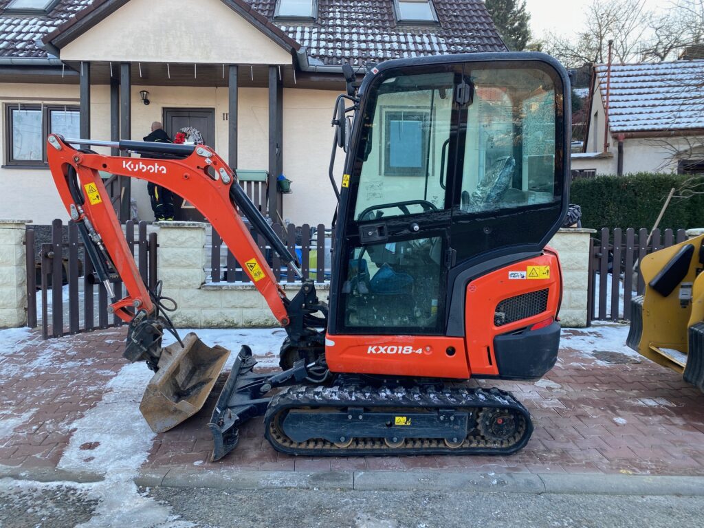 r. v. 2023, ID: 17244, pásové minirýpadlo Kubota KX018-4G + lopata hloubková zubová 300mm, 400mm a 500mm, 888 MTH, cena 490 000,- Kč bez DPH
